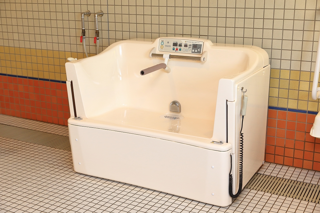 ゆったりお風呂を楽しんでいただけるよう、設備を整えております。スペースも広く取り、介助者の動きを妨げません。